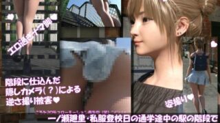 3DCG 一ノ瀬廻里・私服登校日の通学途中の駅の階段でスカート内逆さ撮り盗撮の被害に遭う:PV08(ピンクハート柄のフルバックパンティ)│d_746267│